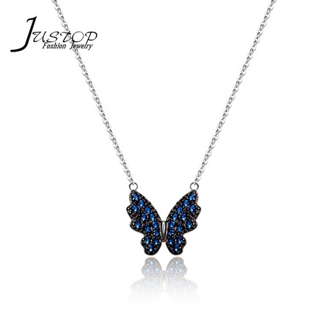 Оптовая продажа, ожерелье JUSTOP из стерлингового серебра 925 пробы, ожерелье с подвеской в виде бабочки из розового золота с голубым цирконием